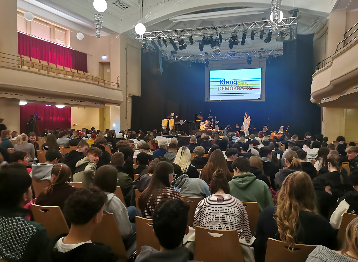 Das Video zeigt einen Einblick in die multimediale Performance des Projektes „Der Klang der Demokratie“.